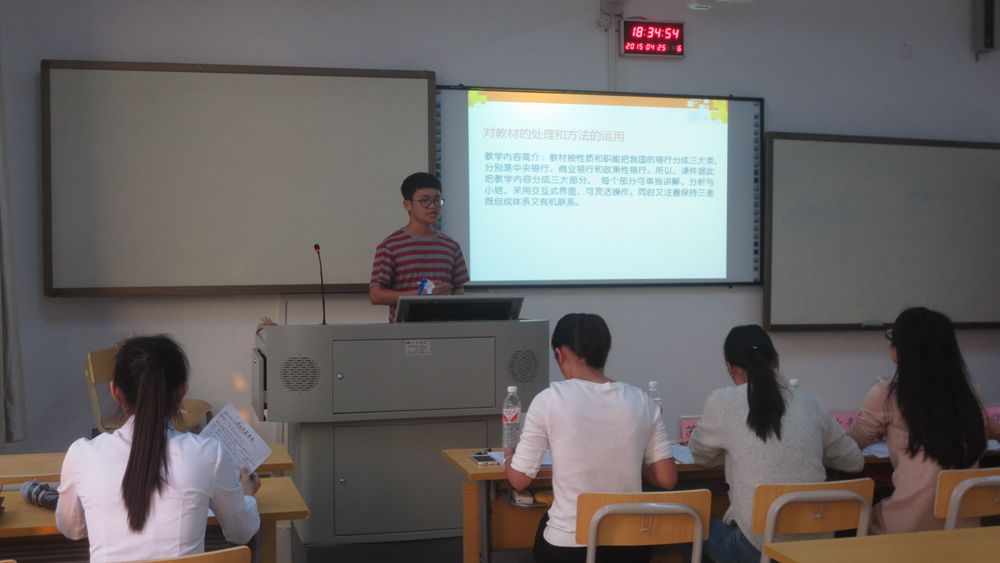 为了提高公司师范生教学技能,促进专业理论与教学实践的有效结合,展现政法学子的教师风采,4月25日下午,公司思想政治教育专业师范生教学技能比赛第一场初赛与历史学专业师范生教学技能比赛初赛分别于五合校区教学楼205、206教室举行。由于思想政治教育专业2012级陶行知实验班的同学在东兴开展教育实习,因此4月26日在东兴举行了思想政治教育专业师范生教学技能比赛的第二场初赛。经过选手们的激烈角逐,共有九位选手脱颖而出进入院级教学技能复赛。5月5日下午,太阳集团tyc151师范生教学技能比赛复赛于五合校区教学楼305室如期举行。担任教学技能比赛的评委分别有学院的老师及往届参加过校级教学技能决赛的选手们,各班员工代表参加并观看了本次比赛。
